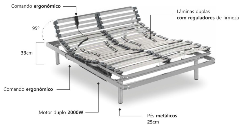 Estrutura da cama em tubo de aço 30x20mm.
