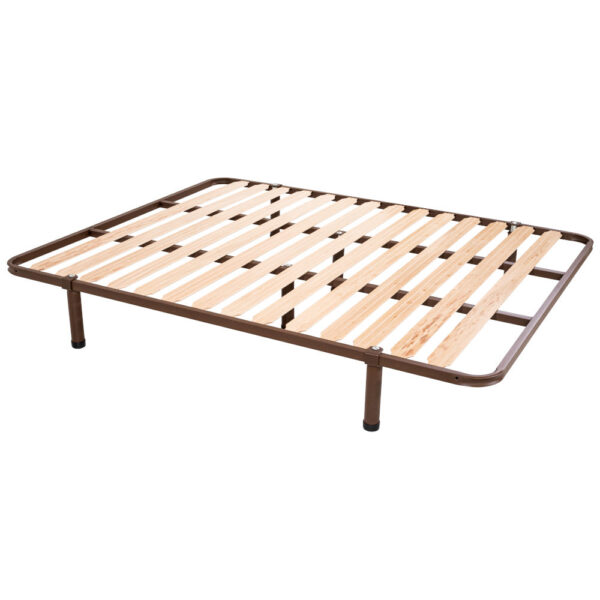 Ripas em madeira de eucalipto coladas em finas camadas, com canais de circulação de ar forçado com largura de 80 mm para uma maior sustentação do colchão.